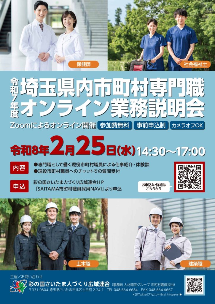 詳細は、SAITAMA市町村職員採用NAVI( https://hitozukuri-navi.jp/event/ )をご覧ください。